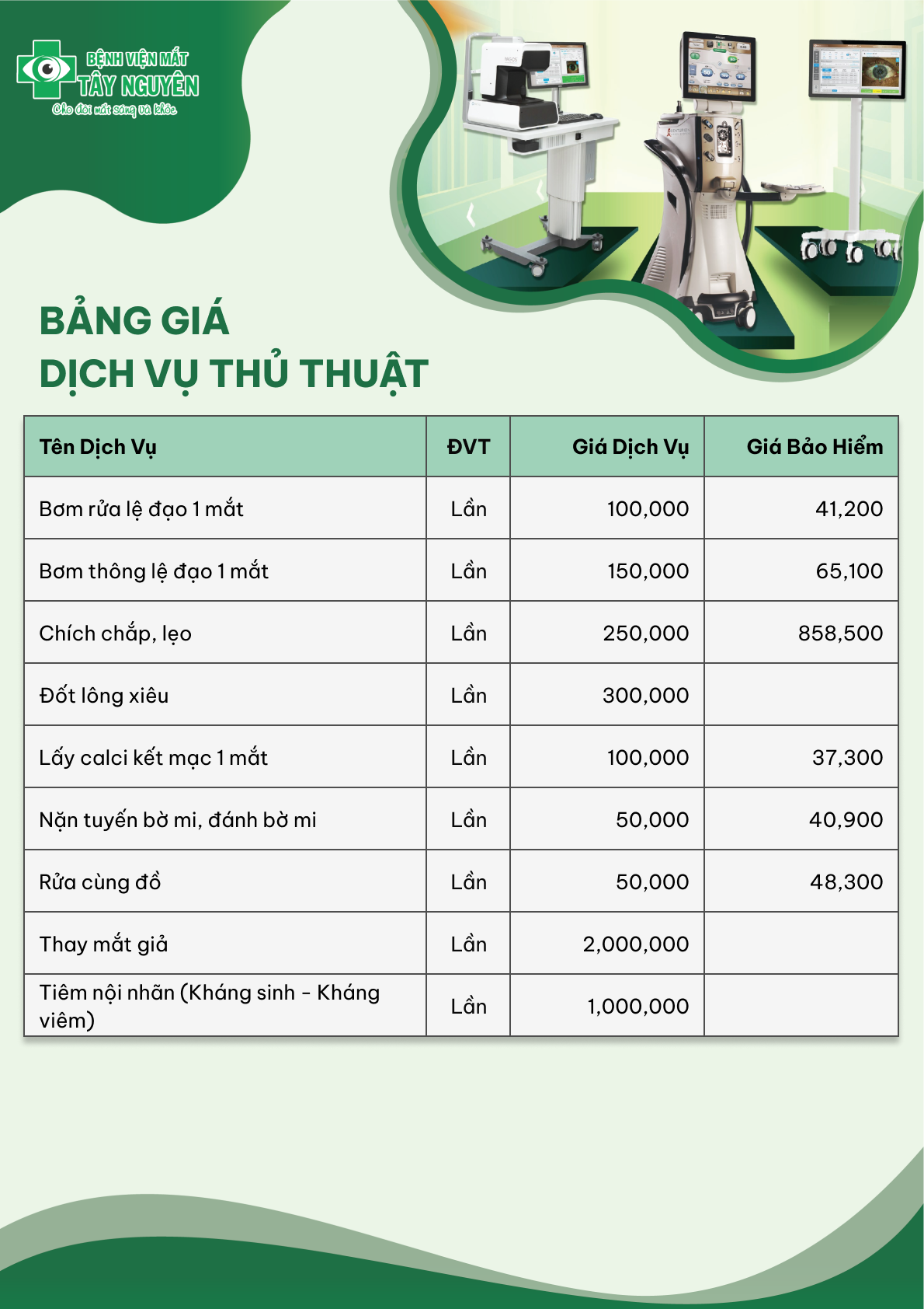 Bảng giá dịch vụ Thủ thuật