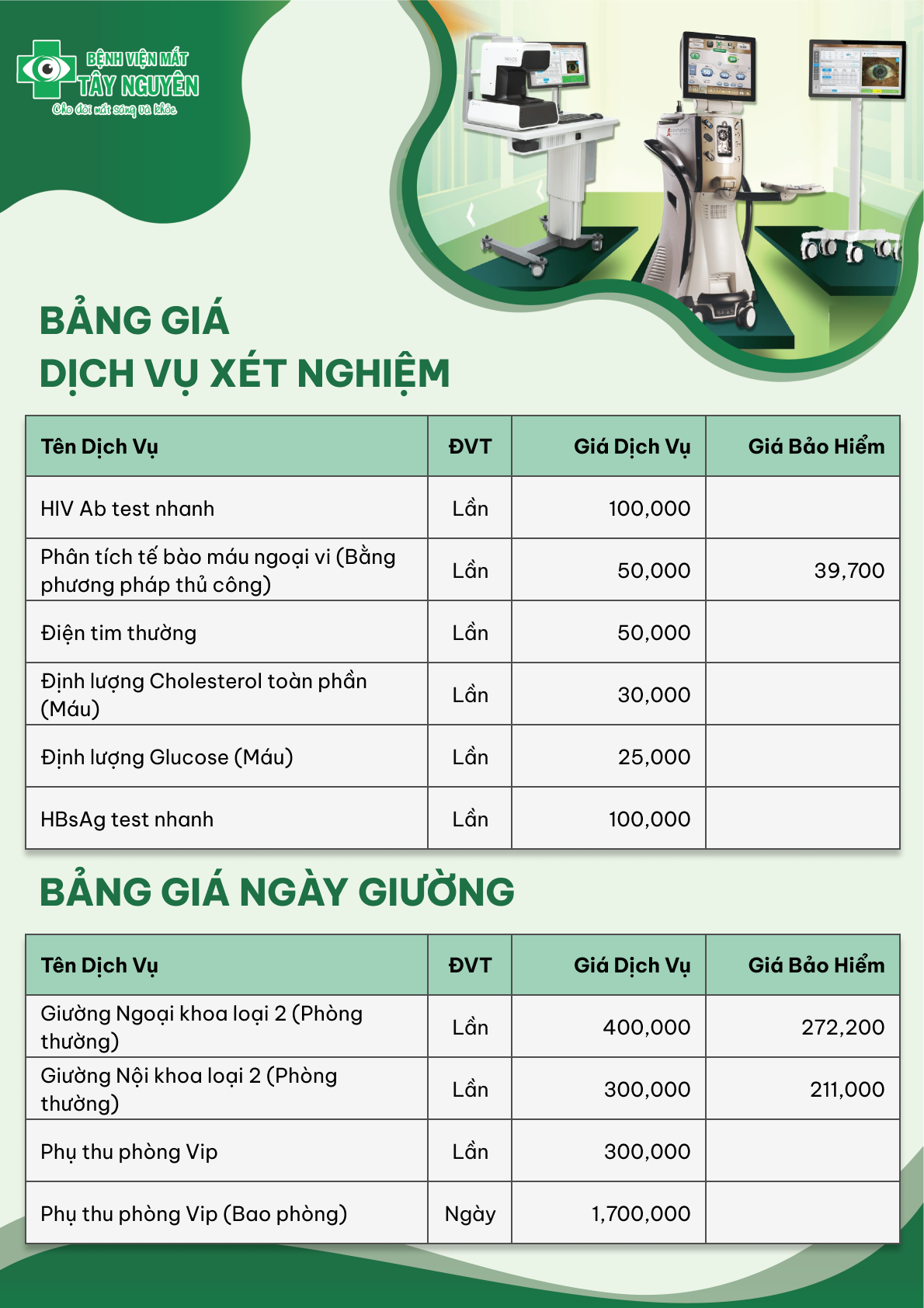 Bảng giá dịch vụ công khám