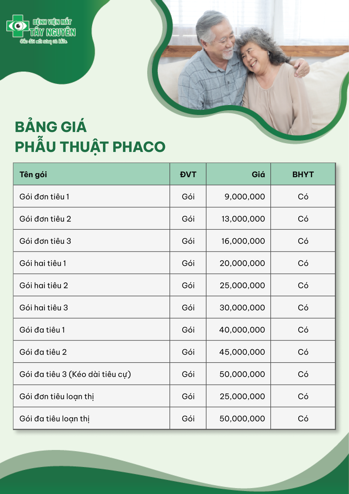 Bảng giá phẫu thuật PHACO