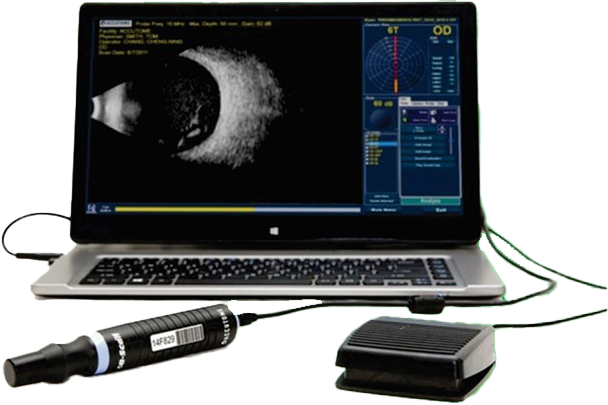 Máy siêu âm mắt B-scan là một thiết bị y tế dùng để chẩn đoán hình ảnh, sử dụng sóng siêu âm tần số cao tạo ra ảnh hai chiều chi tiết về các cấu trúc bên trong mắt. Thiết bị này đặc biệt hữu ích khi bác sĩ không thể nhìn rõ bán phần sau của mắt do đục thủy tinh thể, xuất huyết hoặc các bệnh lý khác. B-scan giúp đánh giá các tình trạng như khối u, bong võng mạc, xuất huyết dịch kính và dị vật trong mắt…..